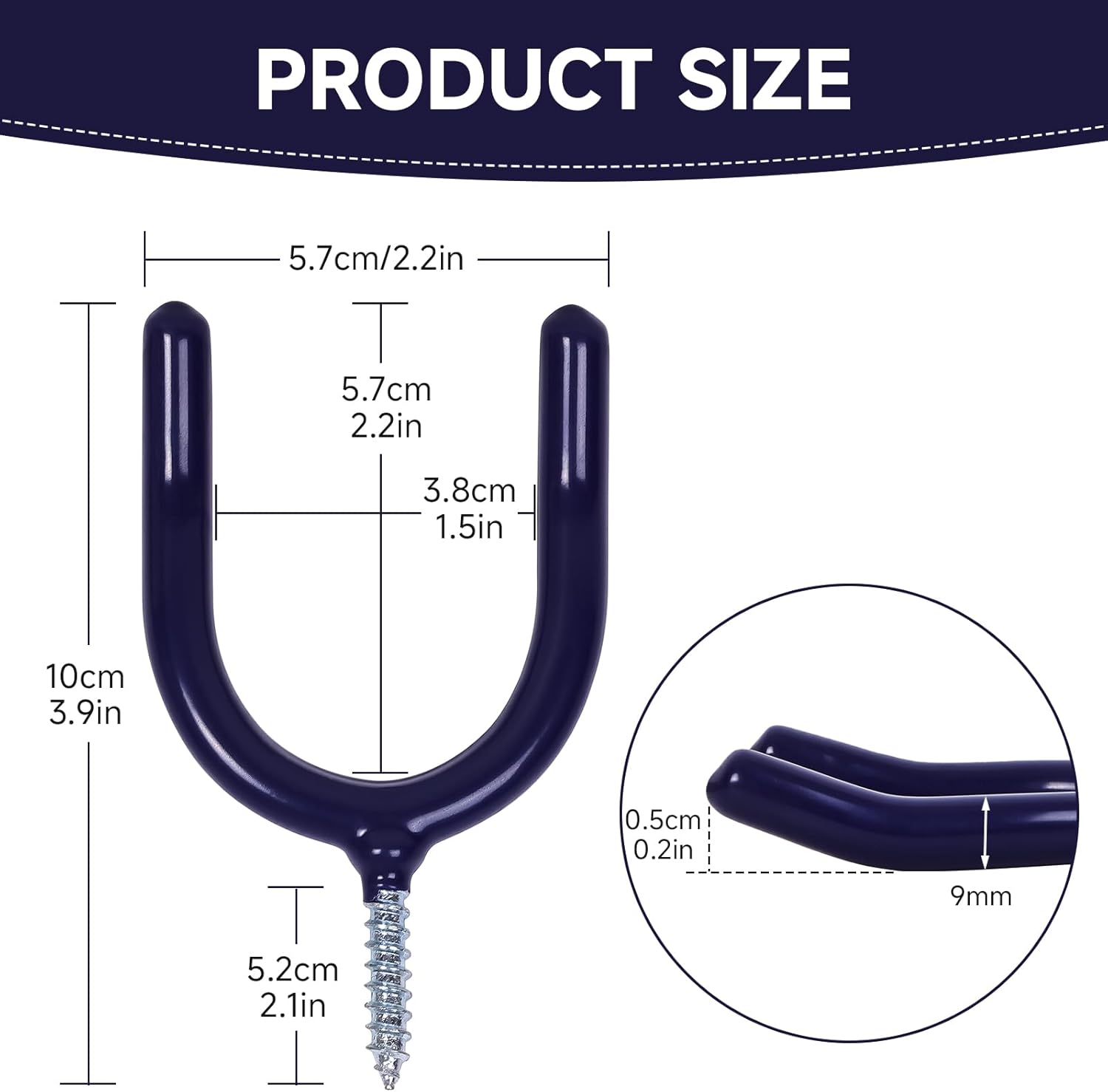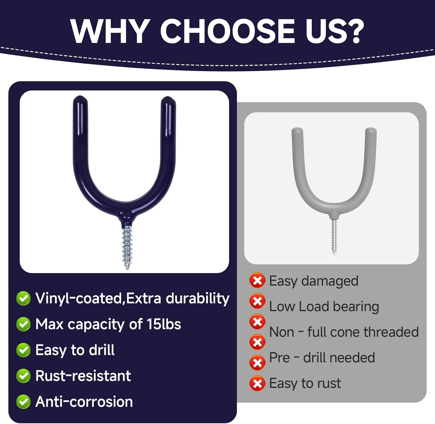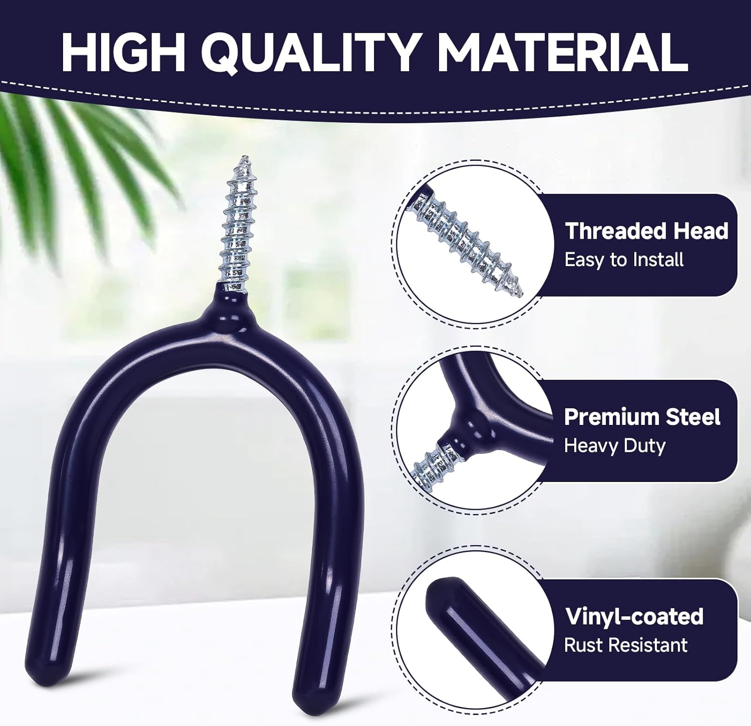 16 Pack Garage Storage System Steel U Hooks with Anti-Slip Coating Home Improvement and Organization Screw in Hooks Easy Wall Mounting Heavy Duty Bike and Ladder (Blue, 16 Pack)