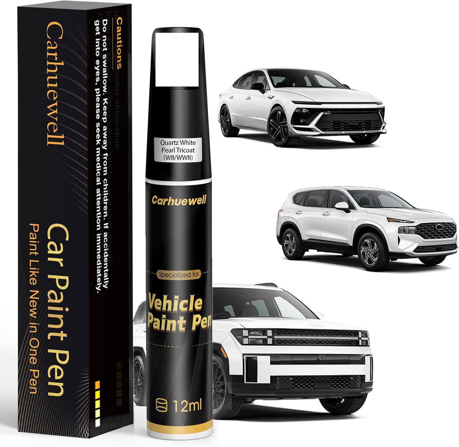 (W8/WW8) Quartz White Pearl Tricoat Touch Up Paint Compatible with Hyundai, Exact Match Car Paint Pen Automotive Scratch Repair Remover Kit Quick & Easy Solution for Vehicle Chips and Nicks