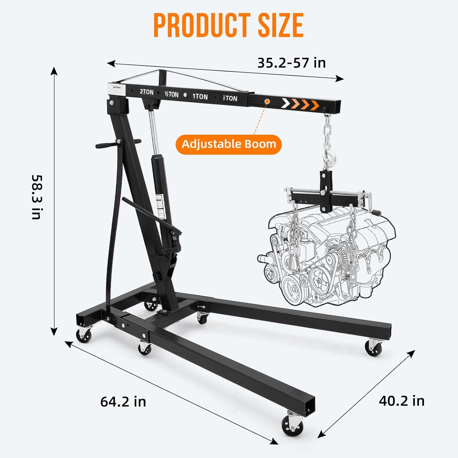 - 【EASY TO OPERATE】: Equipped with 6 smooth-rolling casters, Our hydraulic engine lifter is easy and flexible to move, Reducing manual labor and ensuring a stress-free repair experience. There are 4 adjustable positions ((0.5T, 1T, 1.5T, AND 2T) ) to meet your varying work requirements.
