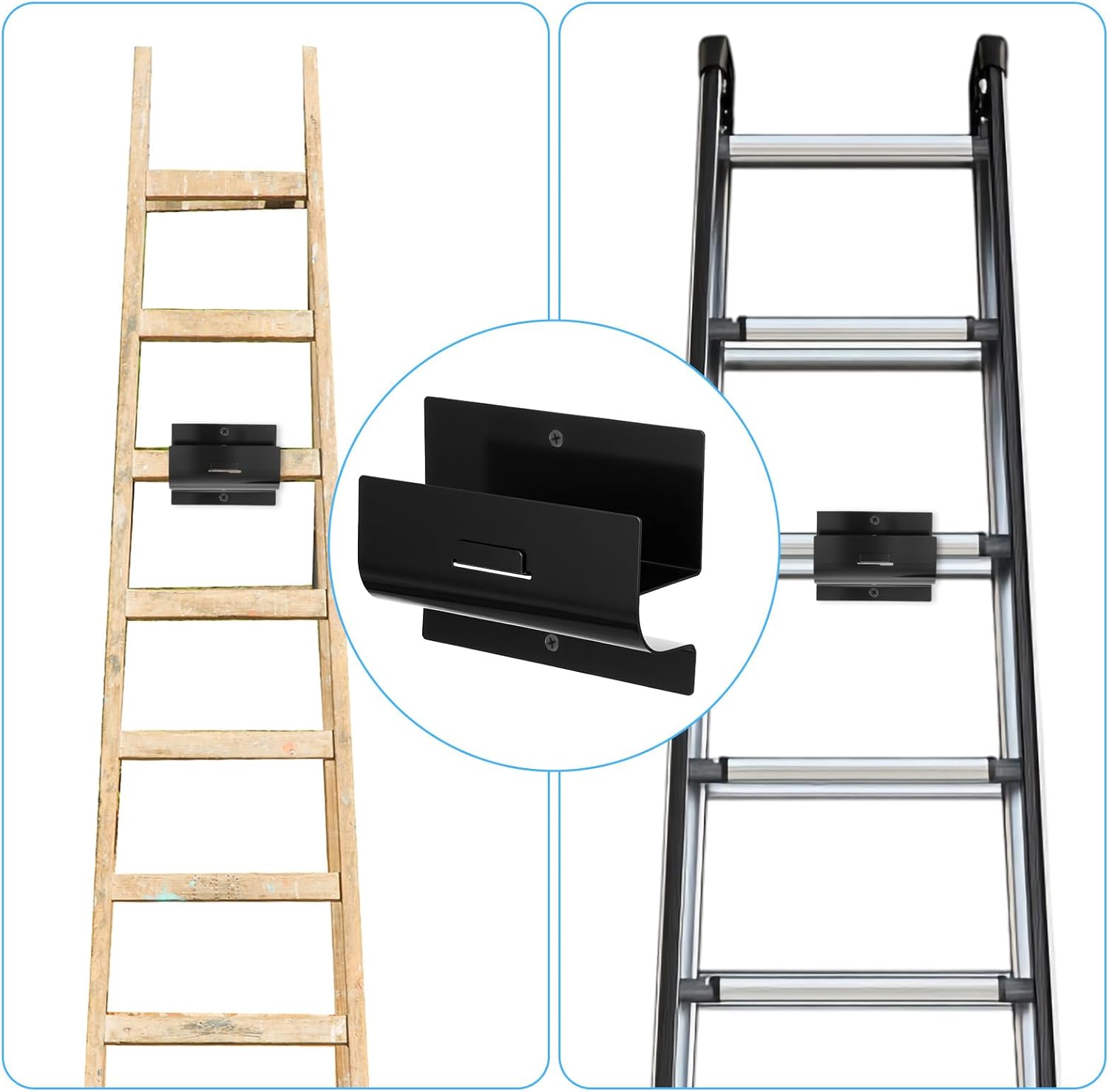 - 【Easy Installation】Each ladder hook comes with pre-drilled holes and screws for quick mounting on walls or studs. No complex assembly is required—just a power drill and level for precise placement. Install in minutes and enjoy an organized space effortlessly.