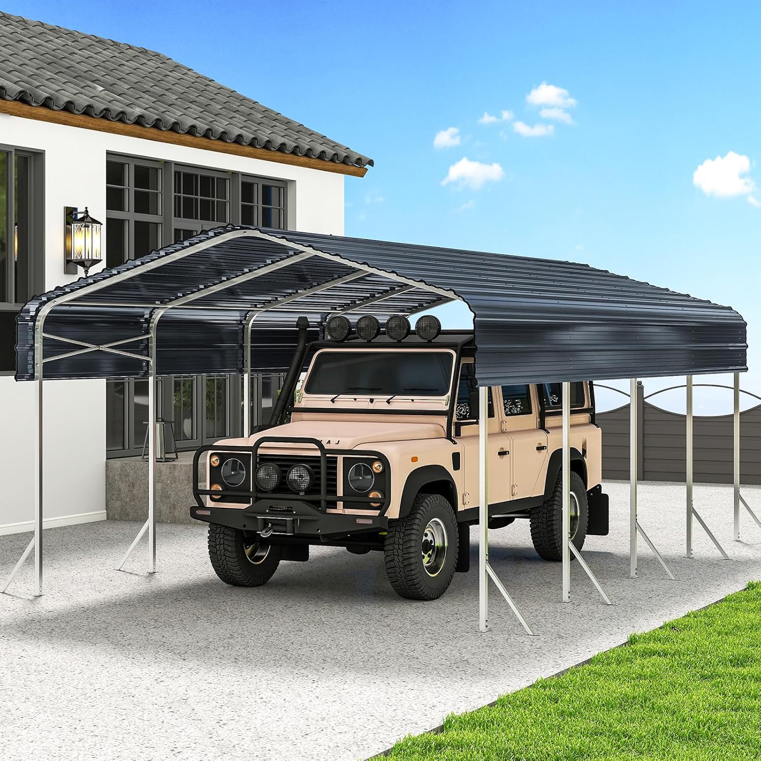 - Year-Round Protection – The 2" x 2" reinforced frame and 27-gauge metal roof provide reliable shelter, keeping your vehicles and equipment safe from rain, snow, wind, and sun