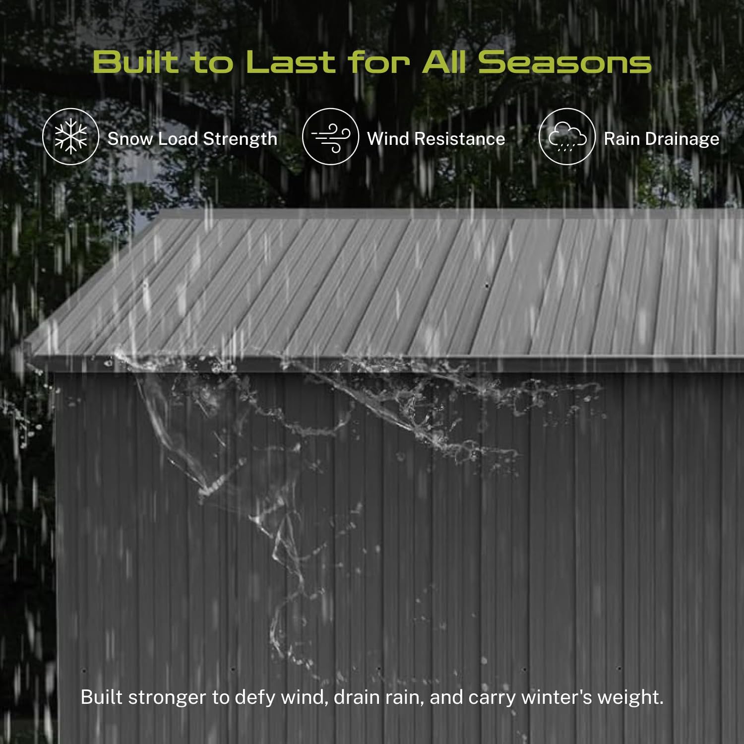 - 【Ultra-Durable for Harsh Climates】Constructed with 24/34-gauge galvanized steel, this weatherproof garden shed resists rust, 6 Beaufort winds (24-30mph), and heavy snow, ensuring a 10-year lifespan in coastal or snowy regions