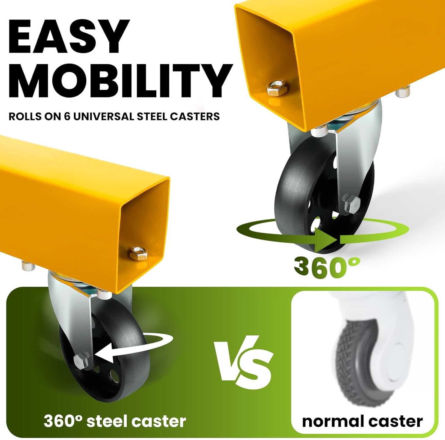 - 【360° Swivel Casters】Equipped with six heavy-duty swivel casters—including four 360° rotating rear casters—this engine hoist delivers unmatched mobility, allowing precise transport and positioning of heavy loads even in tight spaces.