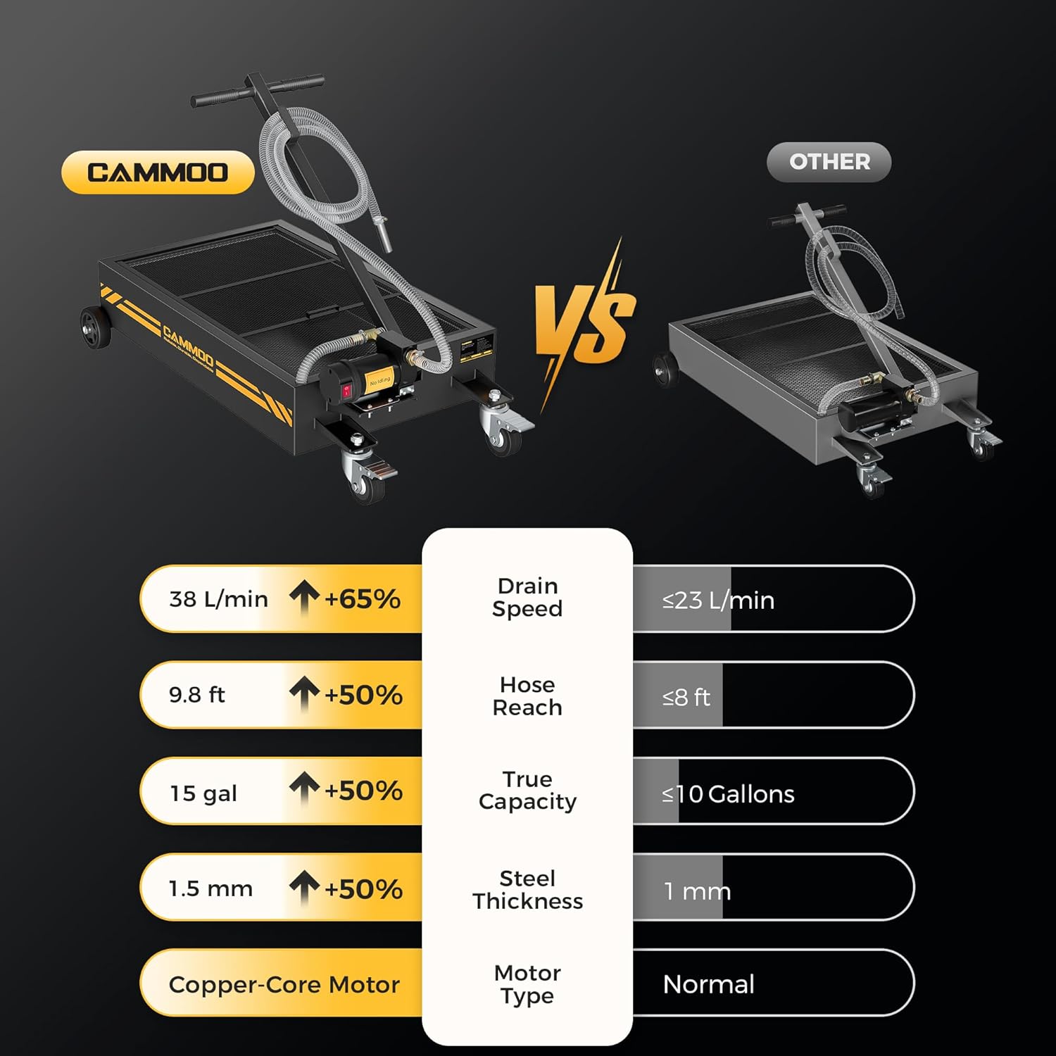 - Optimized Copper Motor:The copper motor features a 110V power supply and 200W maximum output, tipping the scales at 610.5g to stand heavier and more robust than standard motors in oil pans. This added heft translates to stronger performance: it delivers a powerful 38L/min flow rate, draining oil 65% faster to help finish jobs in less time. For busy shops, and weekend DIYers alike, this means boosted efficiency, reduced labor time, and smoother workflow—whether tackling back-to-back oil changes with oil pans or squeezing in a project at home. It is engineered to make every task quicker, easier, and more reliable.