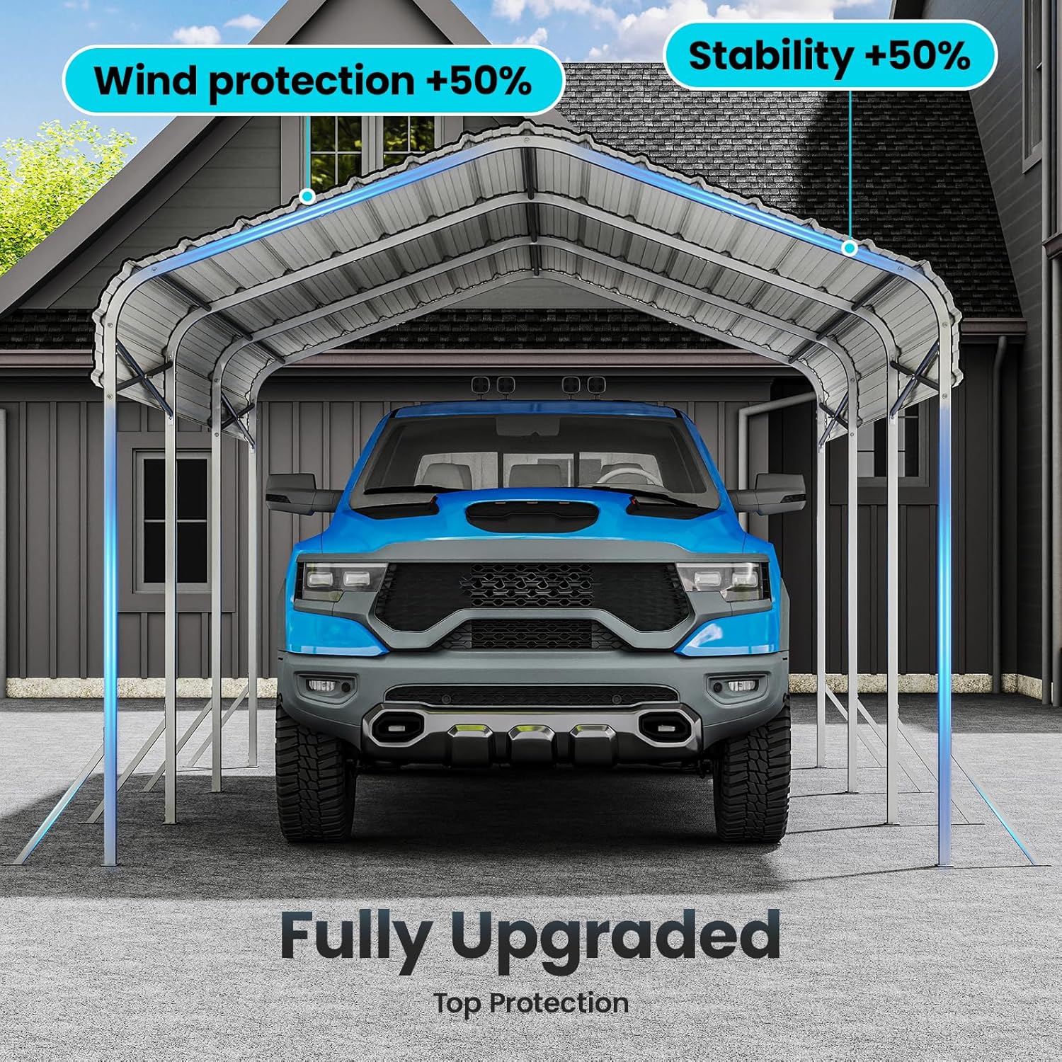 - Year-Round Protection – The 2" x 2" reinforced frame and 27-gauge metal roof provide reliable shelter, keeping your vehicles and equipment safe from rain, snow, wind, and sun