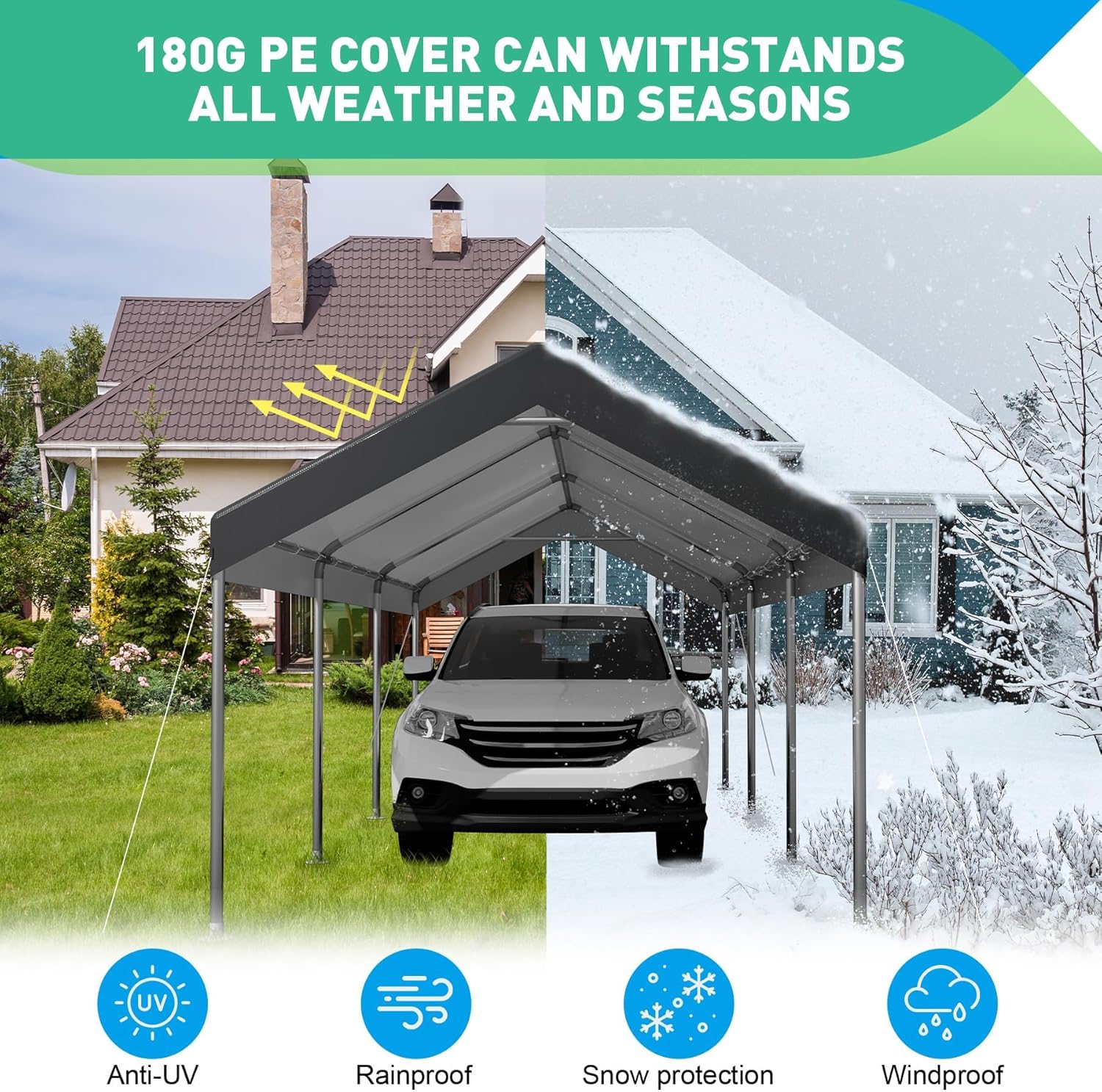 - 【ALL-SEASON PROTECTION FROM THE ELEMENTS】: Stay shielded year-round with the 180g waterproof canopy cover, crafted from extra-thick polyethylene fabric. This heavy duty all weather carport tent protects vehicles from sun, rain, dust, hail, and snow, preserving their condition. As a versatile 12 x 20 canopy tent, it delivers reliable defense against the elements, ensuring your car, boat, or bike remains safeguarded.
