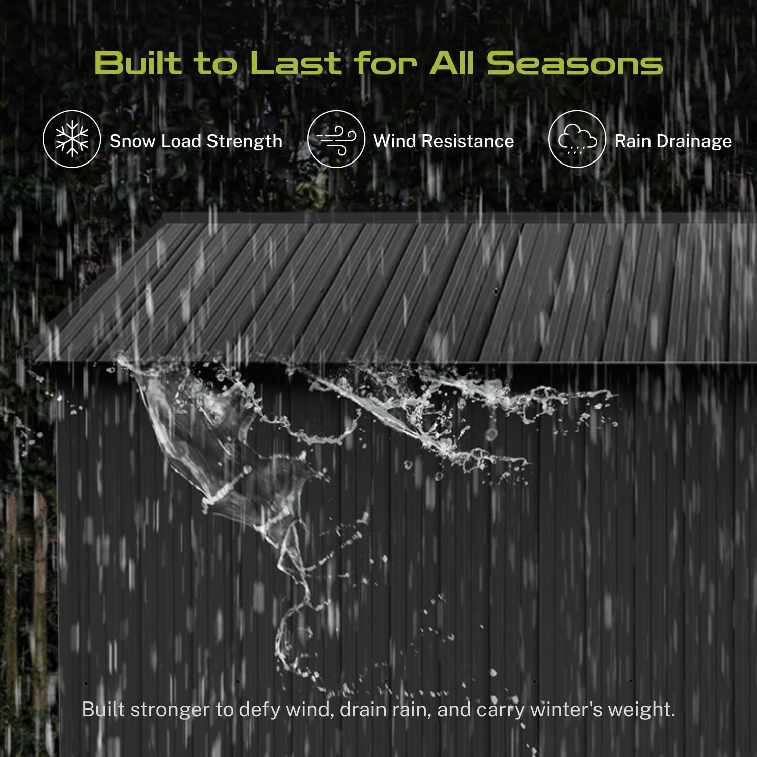 - 【Ultra-Durable for Harsh Climates】Constructed with 24/34-gauge galvanized steel, this weatherproof garden shed resists rust, 6 Beaufort winds (24-30mph), and heavy snow, ensuring a 10-year lifespan in coastal or snowy regions